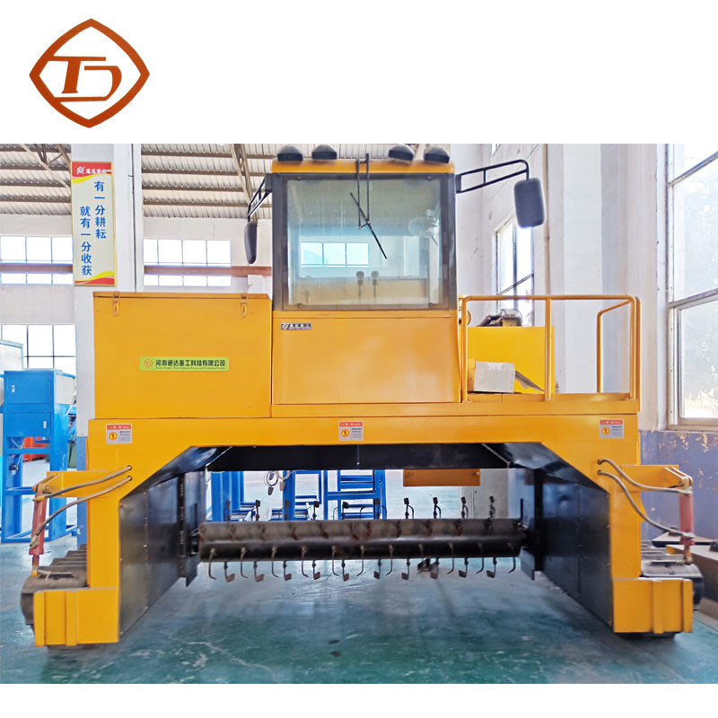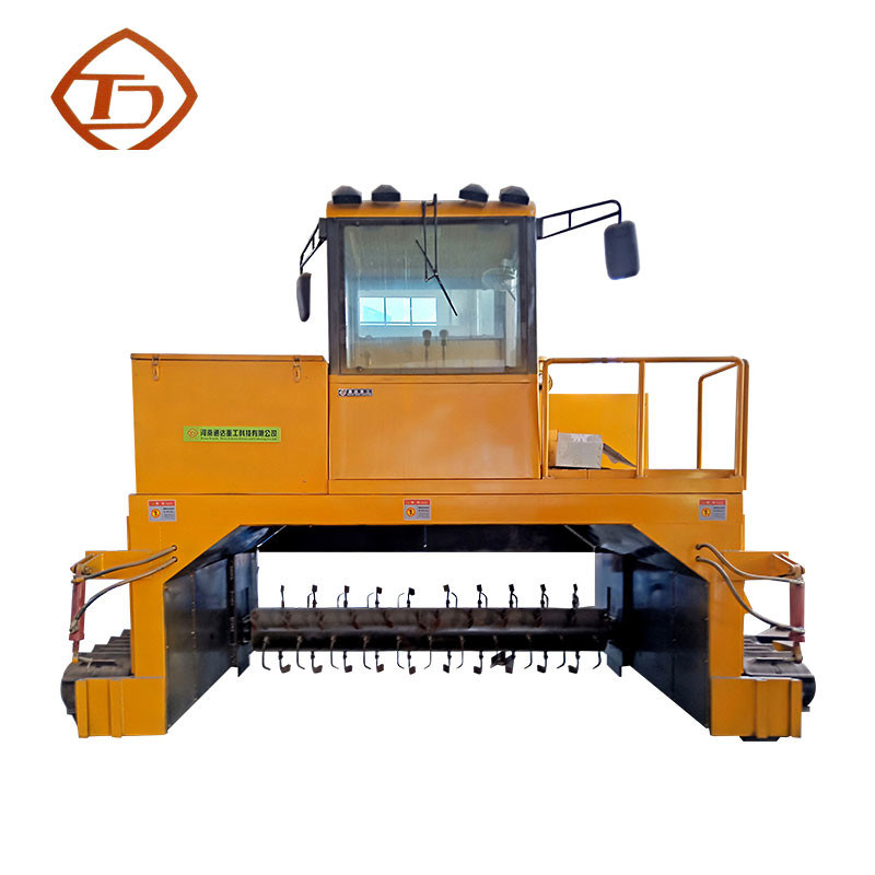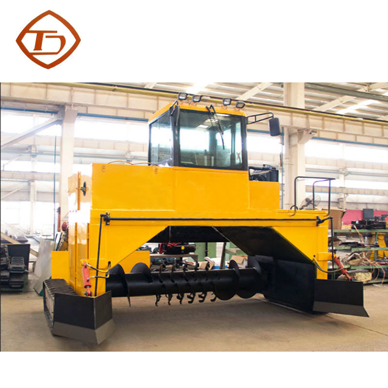 クローラー タイプ合成物ターナーは救う土および人的資源の現在最も経済的なモードである地上の山の発酵モードに属する。材料は積み重ねに積まれる必要があるそして材料は回転機械によって一定の間隔でかき混ぜられ、押しつぶされ、有機物の分解は好気性の条件の下にある。それはまた時間および労働力を非常に救う壊れた機能生産の効率および製品品質をかなり改良される有機肥料の植物の作るおよび費用を非常に減らしてもらい。回転機械が働くとき、沈積物、粘着性がある鶏の肥料および他の材料は材料の発酵のためのよりよい好気性の環境を作成する菌類およびわらの粉とよくかき混ぜることができる。それはだけでなく、溝のタイプをより深く速く発酵させるが、また環境保護の条件と一直線にある発酵の間に効果的に硫化水素、アミン ガスおよびインドールのような有害な、odorousガスの生産を防ぐ。