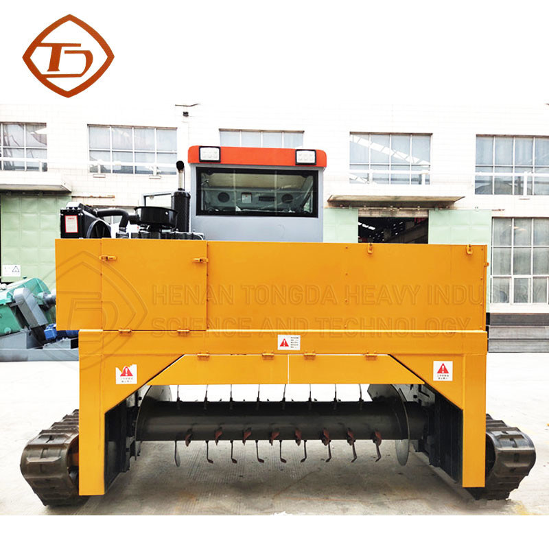 クローラー タイプ合成物ターナーは救う土および人的資源の現在最も経済的なモードである地上の山の発酵モードに属する。材料は積み重ねに積まれる必要があるそして材料は回転機械によって一定の間隔でかき混ぜられ、押しつぶされ、有機物の分解は好気性の条件の下にある。それはまた時間および労働力を非常に救う壊れた機能生産の効率および製品品質をかなり改良される有機肥料の植物の作るおよび費用を非常に減らしてもらい。回転機械が働くとき、沈積物、粘着性がある鶏の肥料および他の材料は材料の発酵のためのよりよい好気性の環境を作成する菌類およびわらの粉とよくかき混ぜることができる。それはだけでなく、溝のタイプをより深く速く発酵させるが、また環境保護の条件と一直線にある発酵の間に効果的に硫化水素、アミン ガスおよびインドールのような有害な、odorousガスの生産を防ぐ。